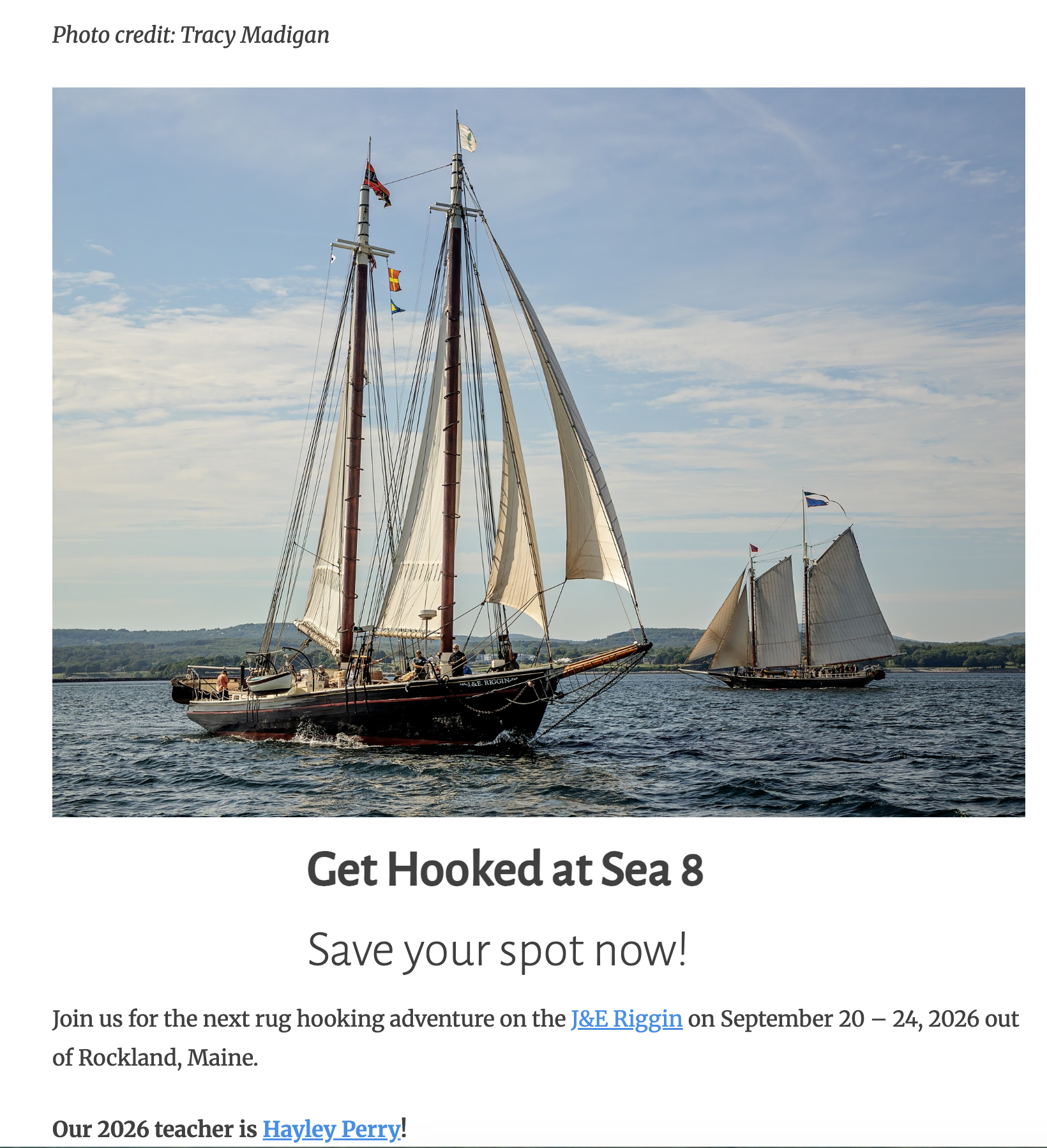 I can’t wait to get back on the open seas aboard the J&E Riggin Schooner this year! Come with us! Click here for more information!